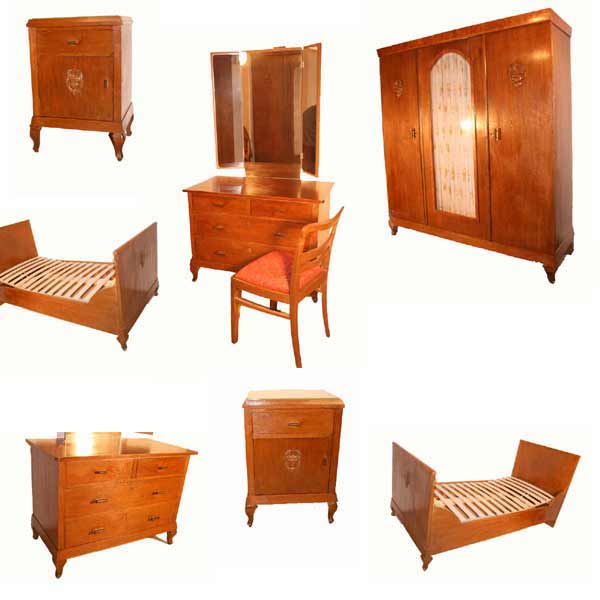 7 tlig. Jugendstil Schlafzimmer / Schrank / Betten / Kommode / Nachttische