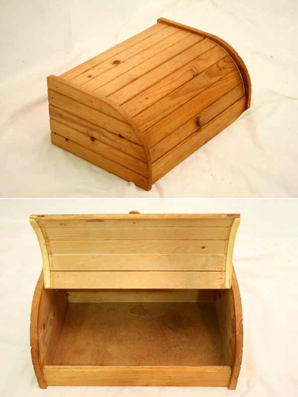 Schöner nostalgischer Holz Brotkasten / Halbrund / Roll Klappe