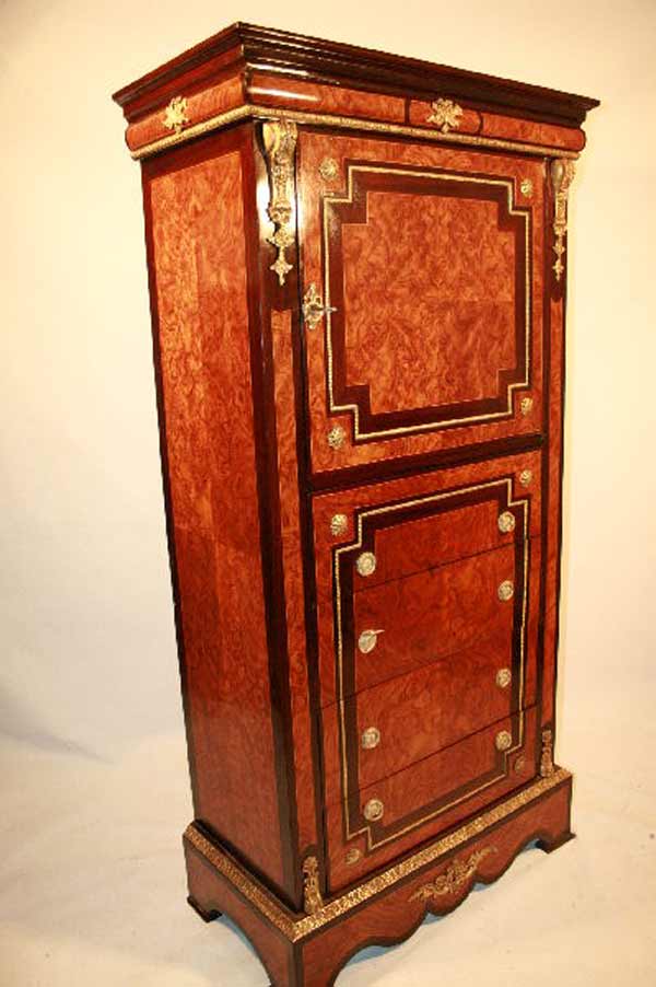 Prunkvoller Empire Schrank / Wurzelholz / Messingbeschläge