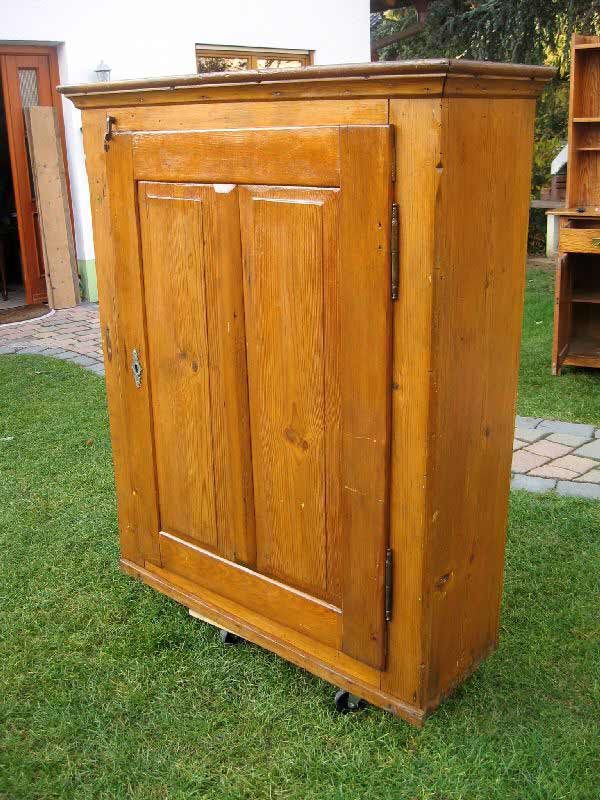 Ausgefallener eintüriger Biedermiert Weichholzschrank