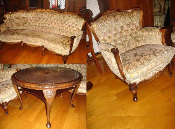 Wundschöner Chippendale Garnitur / Sofa + Sessel + Tisch