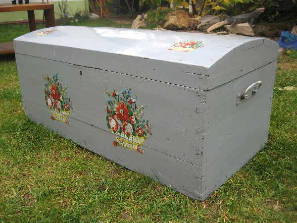 Schöne Biedermeier Runddecktruhle mit Kästchen