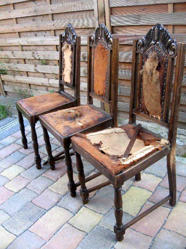 3 schöne Jugendstil Hochlehnenstühle / Schnitzereien