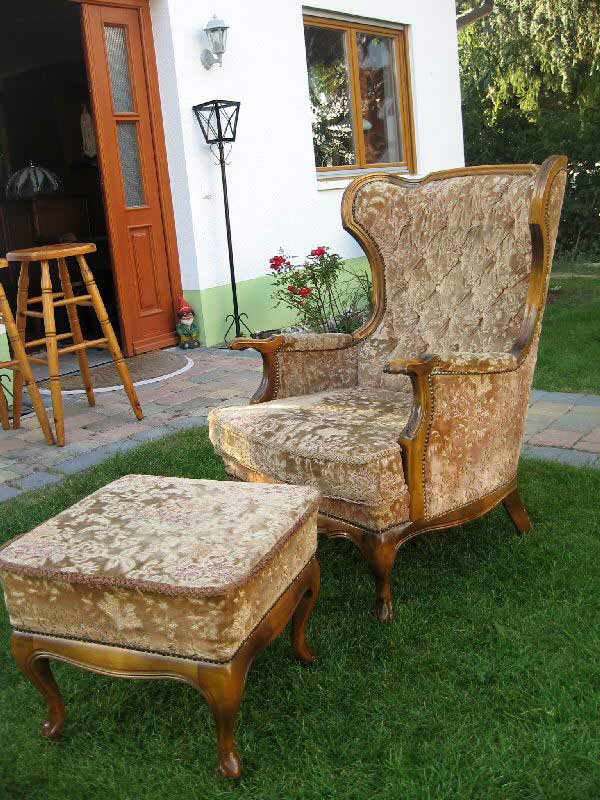 Wunderschöner Chippendale Ohrensessel + Hocker