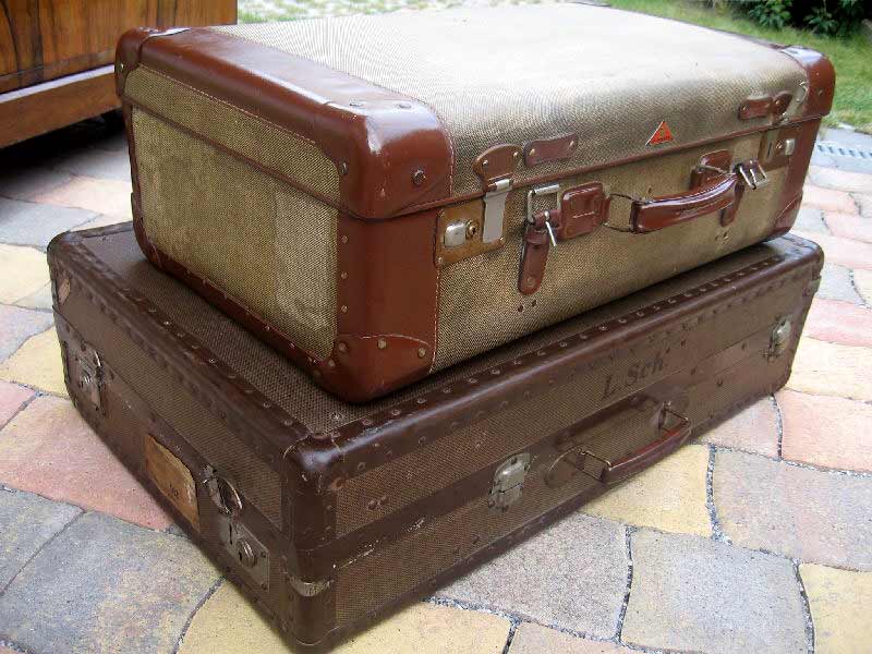 2 antike Reisekoffer / Schrankkoffer mit Kleiderbügeln