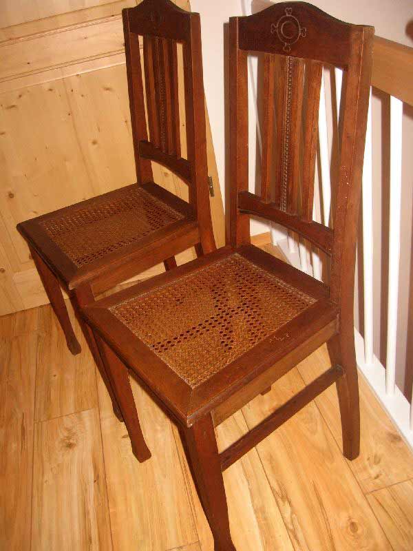 2 Jugendstil Wirtshaus Stühle / Florale Brandmarkung