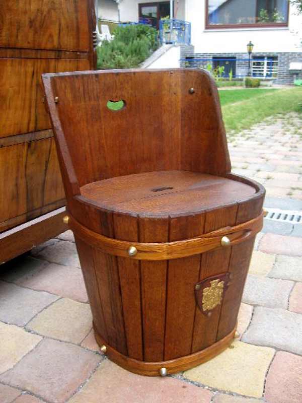 Seltener Hocker / Stuhl in Faßform mit Wappen