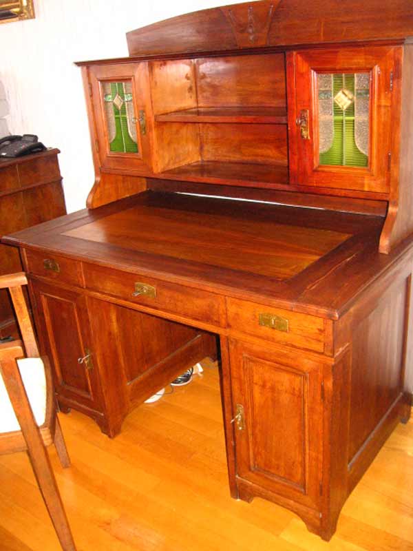 Top! Jugendstil Schreibtisch mit Aufsatz + Armlehnenstuhl