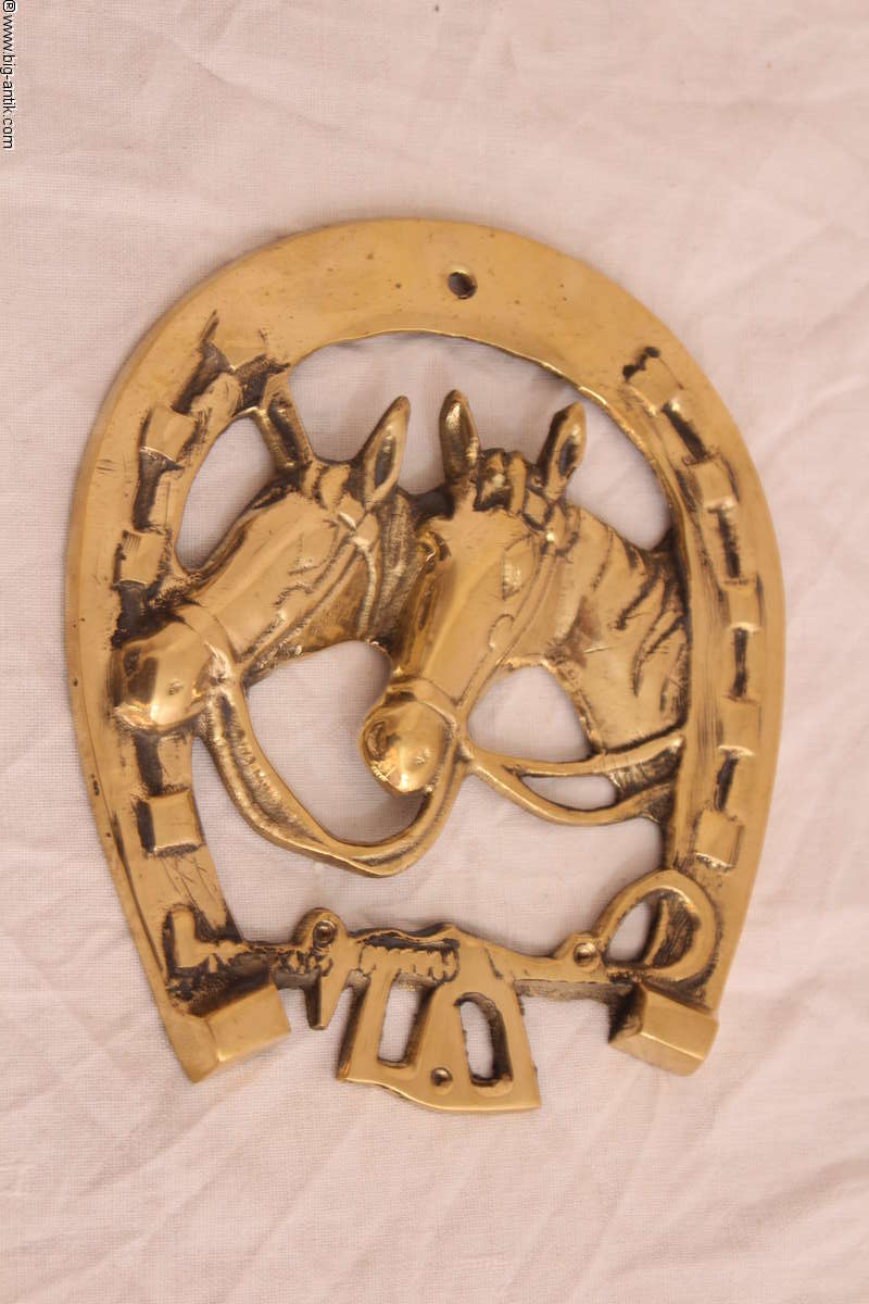 Wunderschönes Hufeisen Glücksbringer aus Metall Guss / Verzierte Pferde / Pferdeköpfe / Goldfarbe