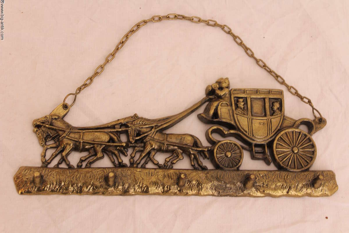 Wunderschöner Schlüsselkasten / Metallguß / Kette / Droschke und Pferde / Metallhaken / Verzierungen