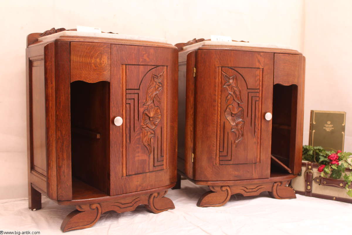 SELTEN! 2 Zauberhafte antike Art Deco Nachtische / Nachtschränke Schnitzereien / Marmorplatte N41-42