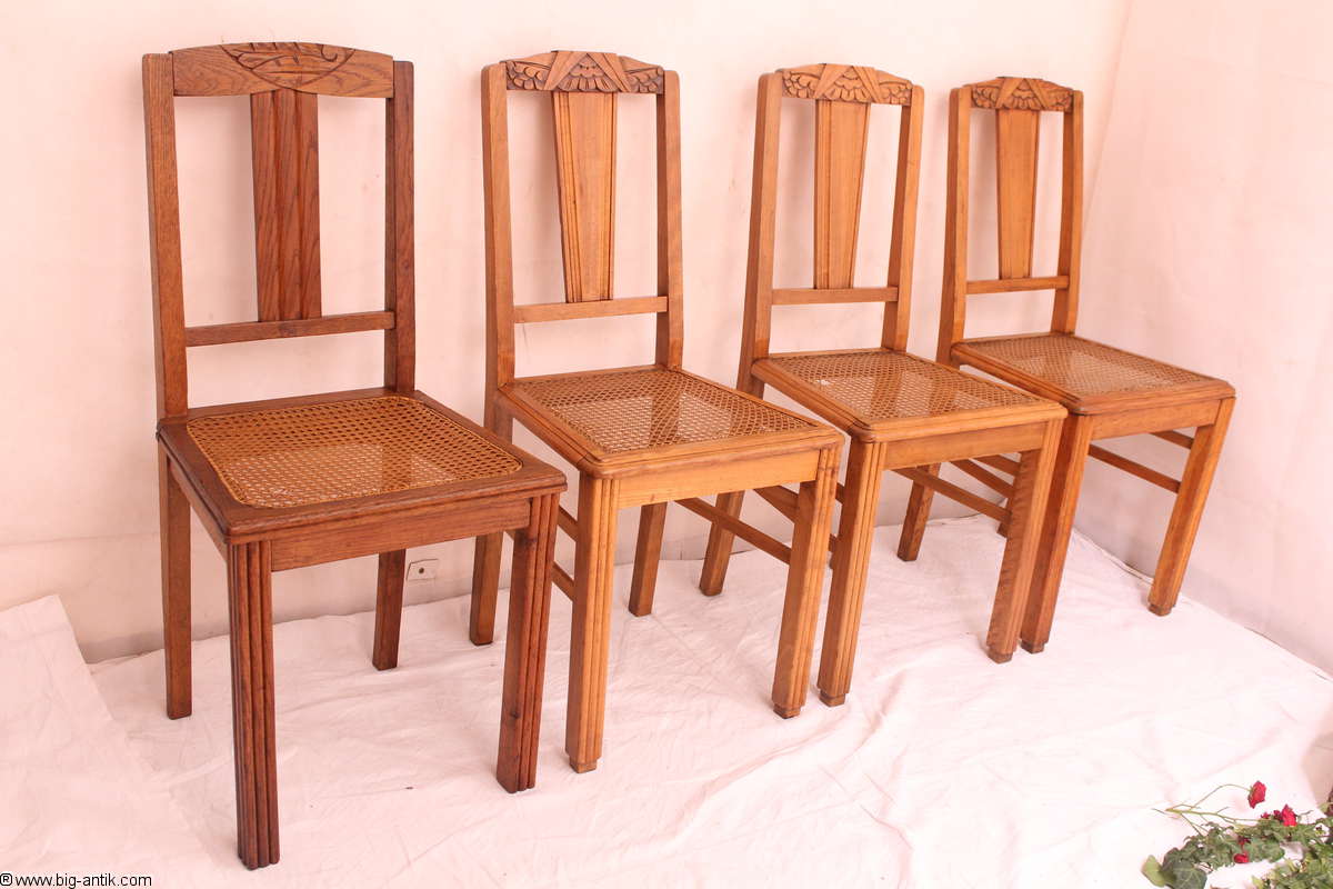 4 zauberhafte antike Jugendstil Stühle / Küchenstühle / Masiv Holz / Schnitzereien / Geflecht
