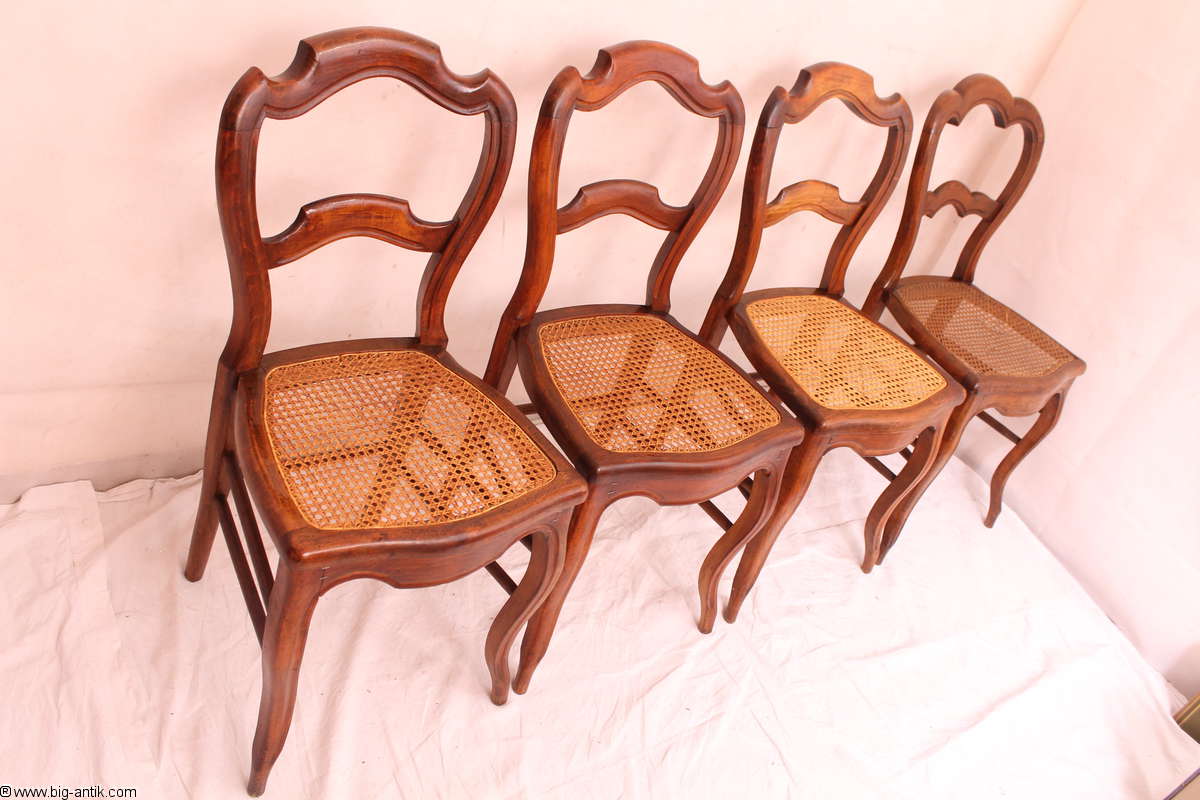 4 zauberhafte antike Biedermeier Stühle / Nußbaum massiv / Sitzgeflecht / geschwungene Beine