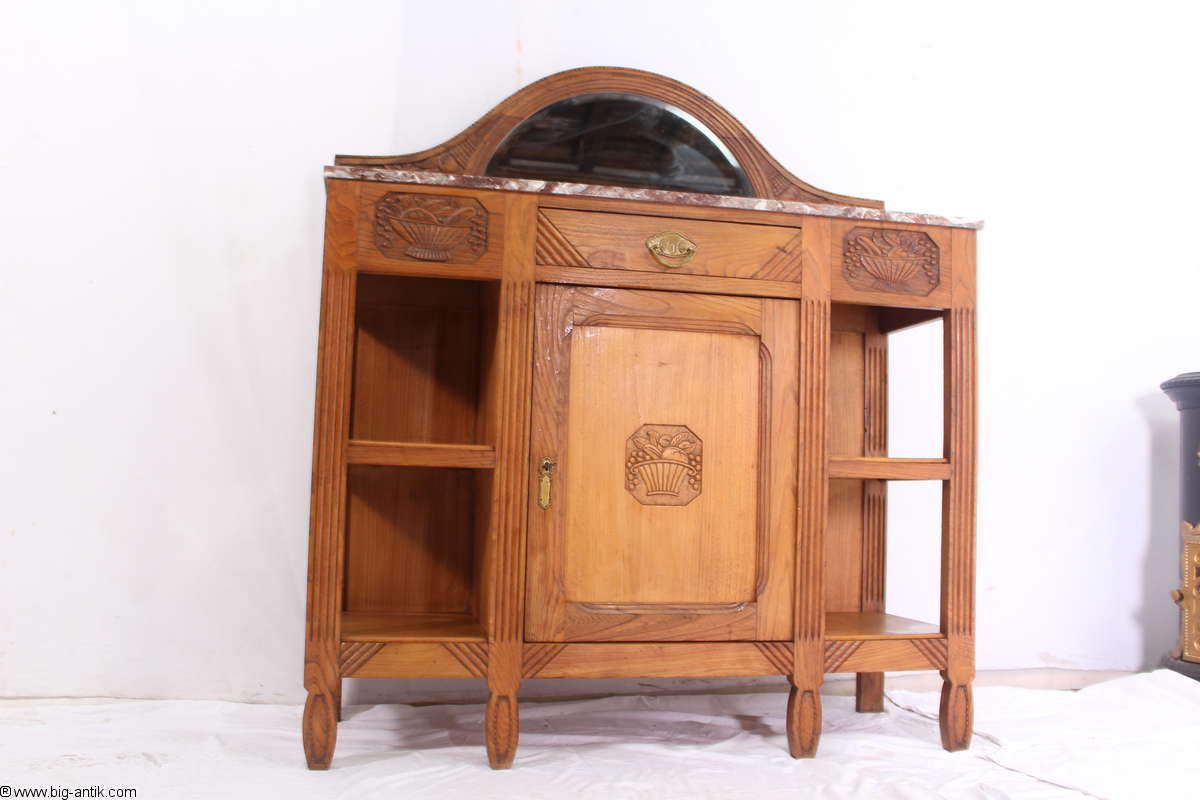 Zauberhafte antike Jugendstil Anrichte Wohnzimmerschrank Kommode mit Spiegelaufsatz Schnitzereien