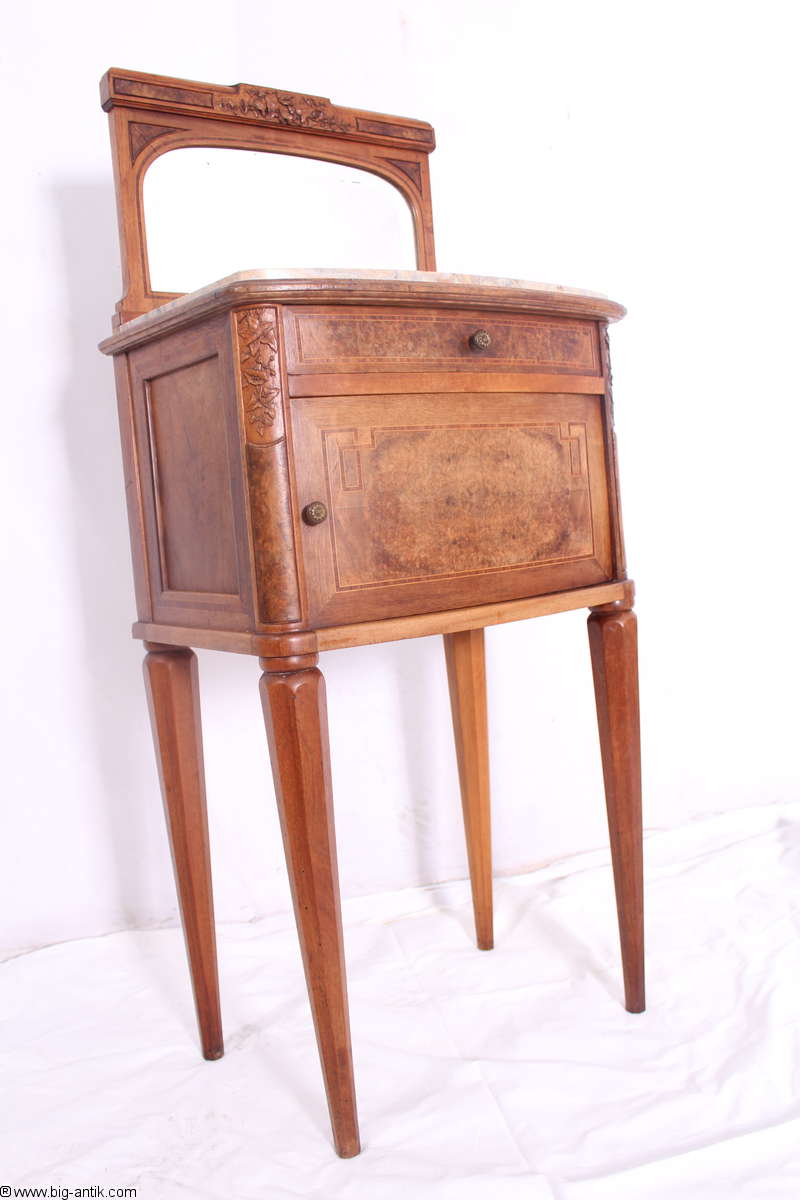 Wunderschöner Antiker Jugendstil Nachttisch Nachtschrank / Beistellschrank Marmorplatte / Nr.41
