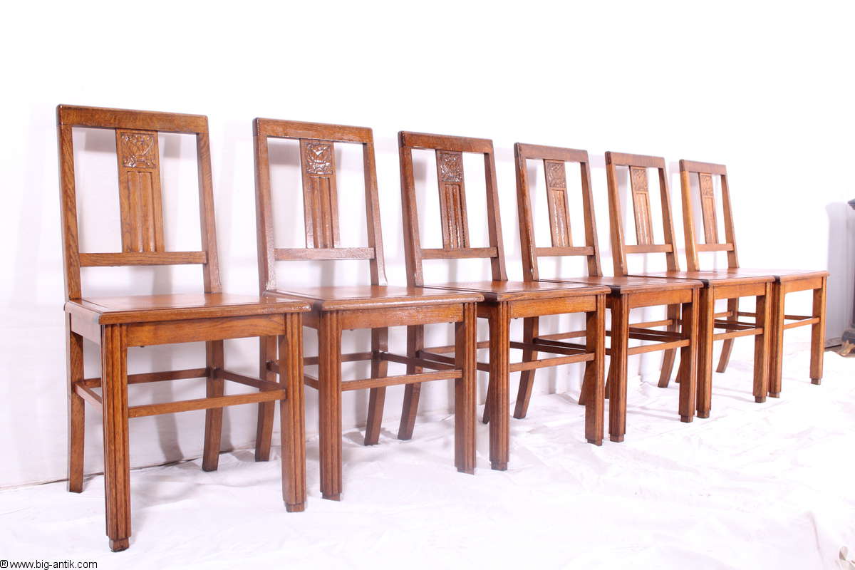 6 Schöne antike Art Déco Stühle / Holzstühle / Küchenstühle / Polsterstühle / Salonstühle