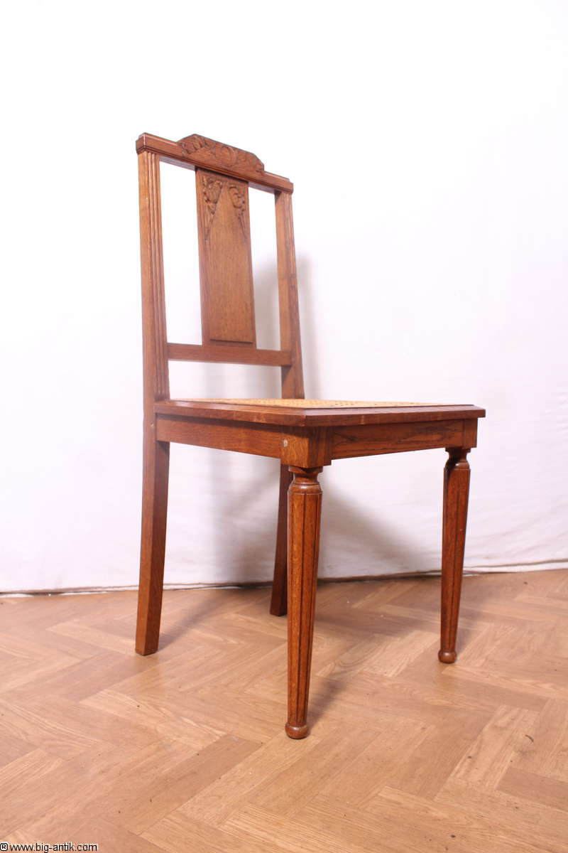 1 von 6 Zauberhafter antiker Jungendstil Stuhl / Holzstuhl / Sitzgeflecht / Rillen und Schnitzereien / 6 Vorhanden