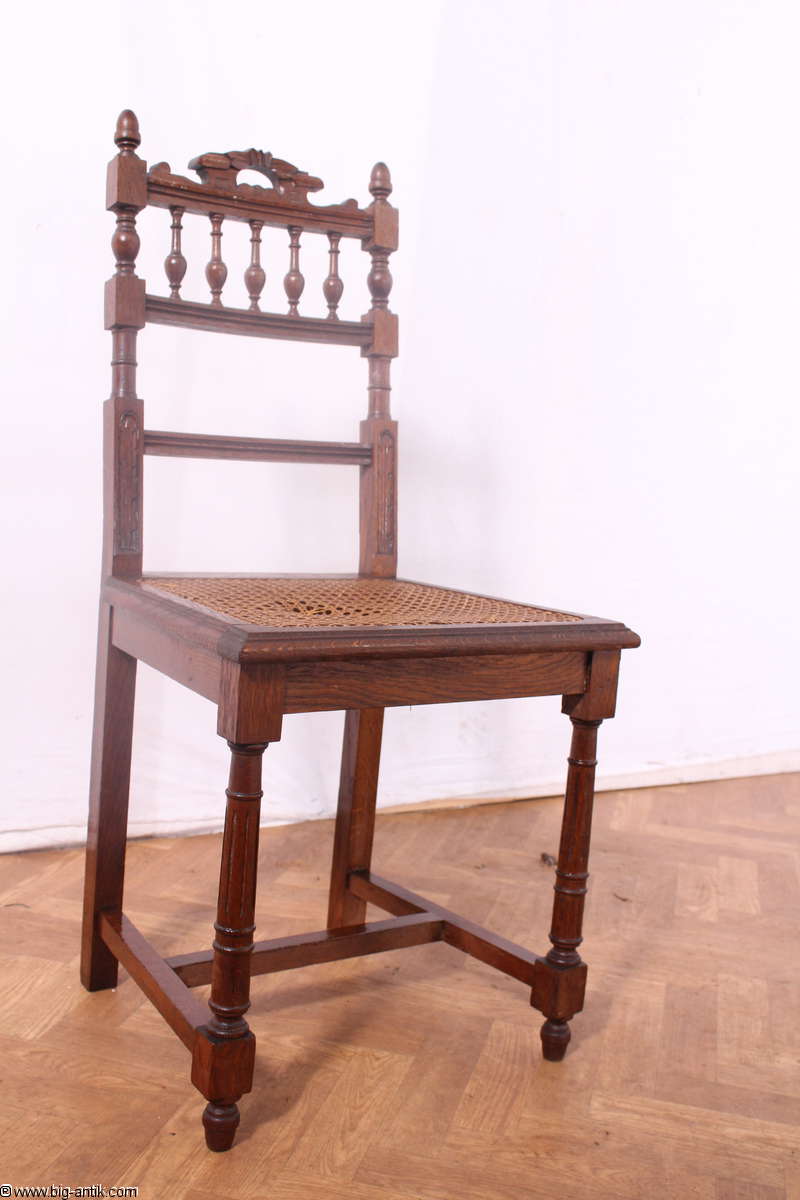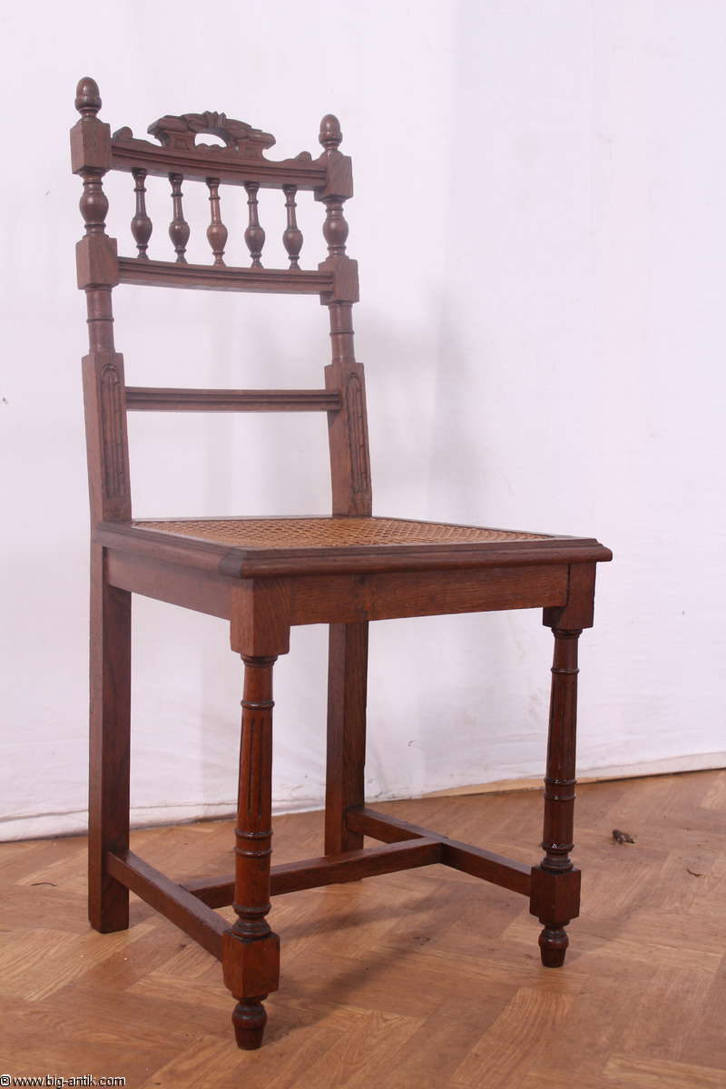 Antiker Gründerzeit Stuhl / Holzstuhl / Sitzgeflecht / Henry II Eiche / Säulen / Nr. G37