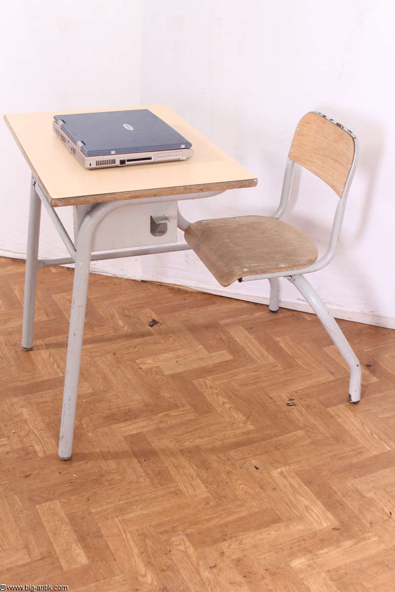 BAUHAUS! Nostalgische 60er Schulbank Bank Schreibtisch Kinderschreibtisch / Metallgestell