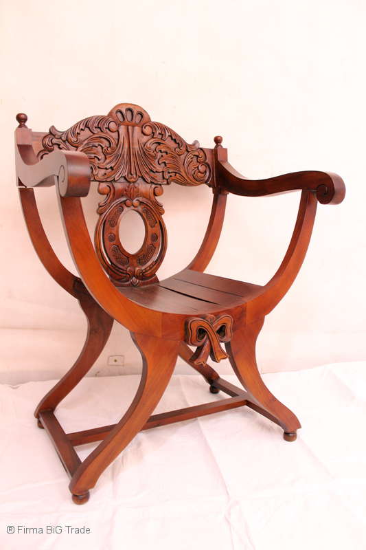 Prunk! Römer Stuhl / Thronstuhl / Scherenstuhl / Schnitzereien / Armlehnenstuhl / Mahagoni Massiv