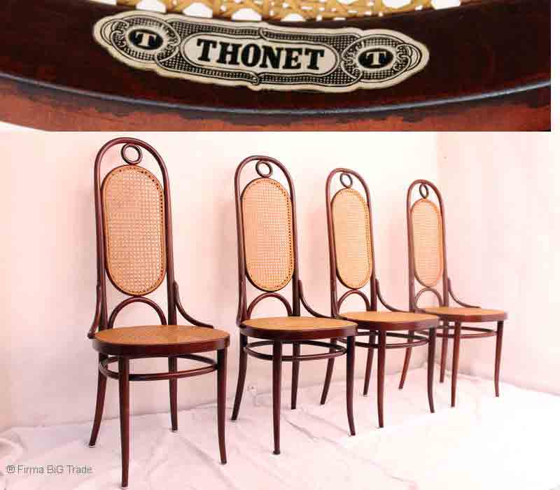 Original! 4 Thonet 77 Hochlehnenstühle / Bugholzstühle Cafehaus Stühle Gefelcht / Thonet Stuhl