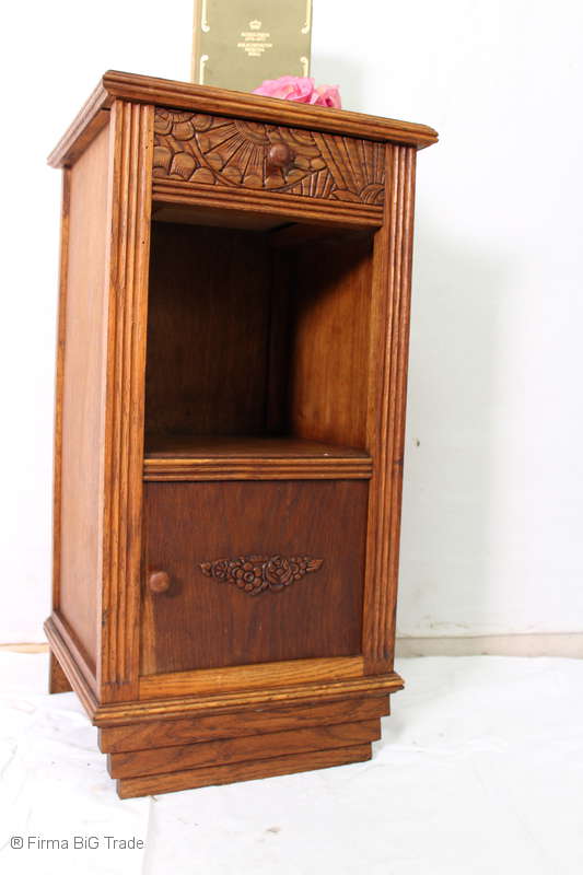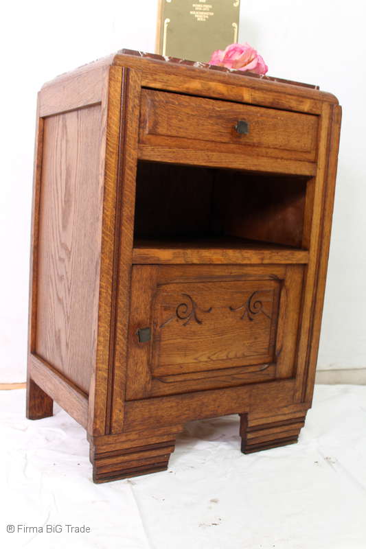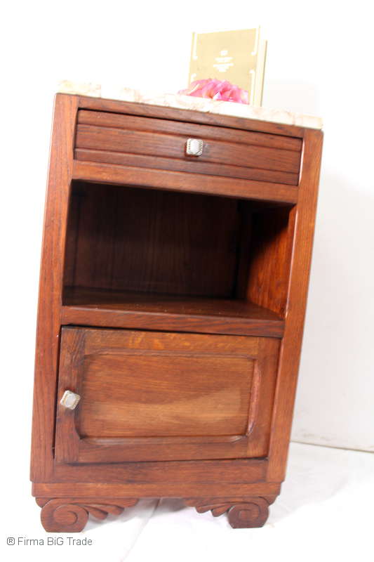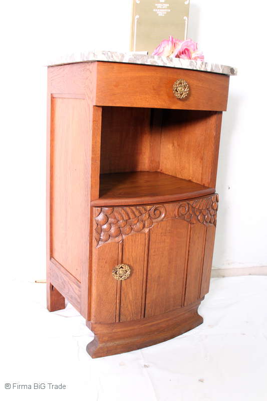 Ausgefallener antiker Art Deco Nachttisch / Nachtschrank / Flurtisch / Schnitzereien / Sockel Marmorplatte / N76