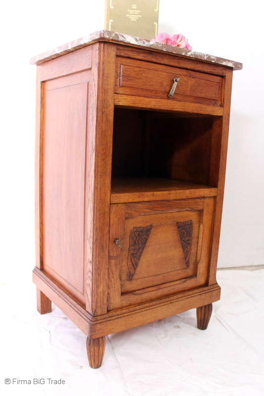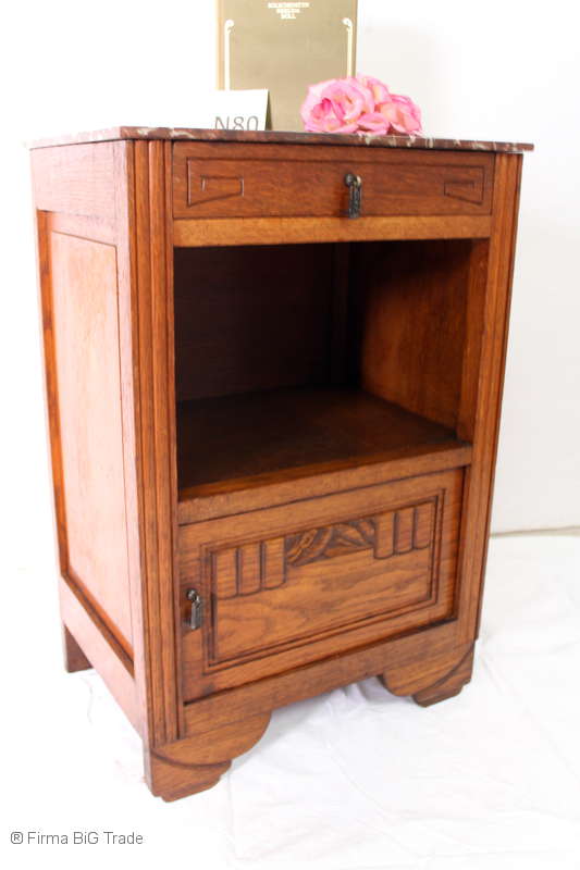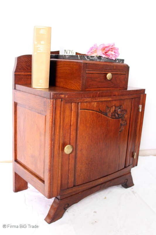 Zauberhafter antiker Jugendstil Nachttisch Nachtschrank Flurschrank Eiche massiv Marmorplatte / N81