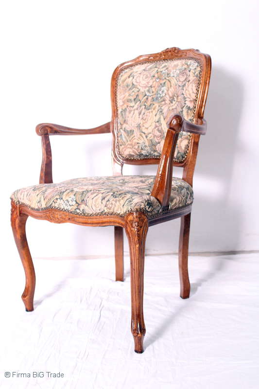 Wunderschöner Armlehnenstuhl / Barock Stil / Chippendale / Goblin Stoff / Nußbaum / Schnitzereien