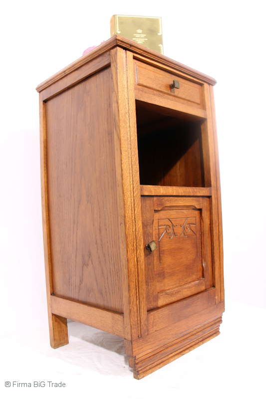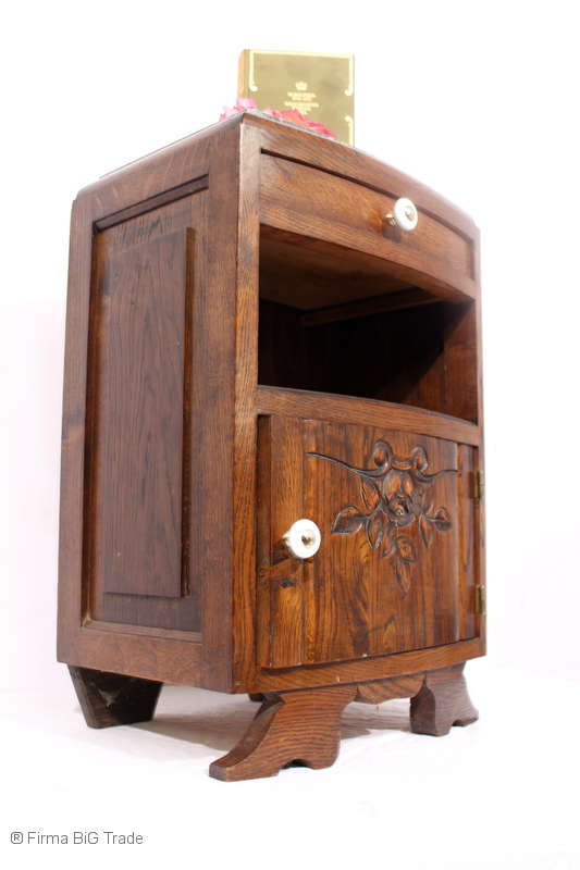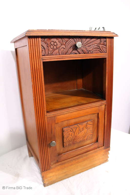 Formschöner Antiker Art Déco Nachttisch Nachtschrank Schnitzereien Beistellschrank Marmorplatte Nr.118