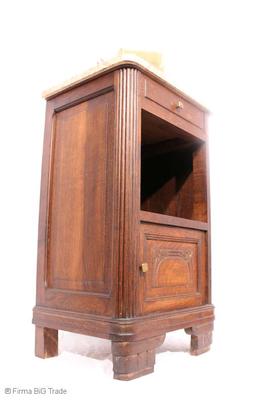 Schöner Antiker Art Déco Nachttisch Nachtschrank dezente Schnitzereien Beistellschrank Marmorplatte Nr.121