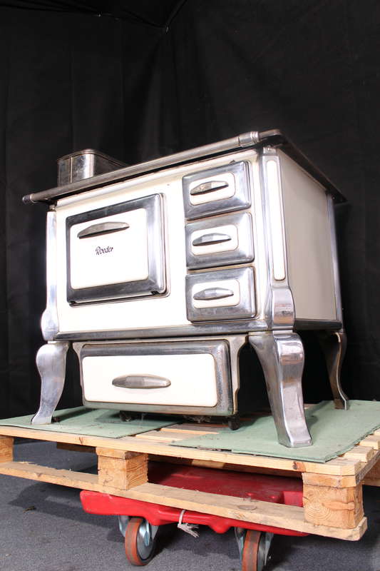 Wunderschöner antiker Küchenofen Herd Ofen Handlauf Emailliert Rückwand Wasserschiff und Besteck