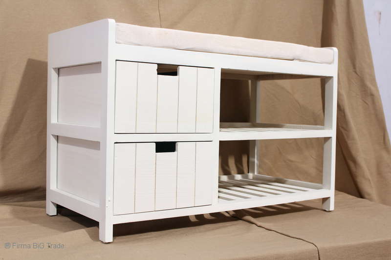 Shabby Chic! Schöne Flurbank Schuhregal Schuhbank 2 Schubladen 2 Ablagen Sitzpolster Weiß 2