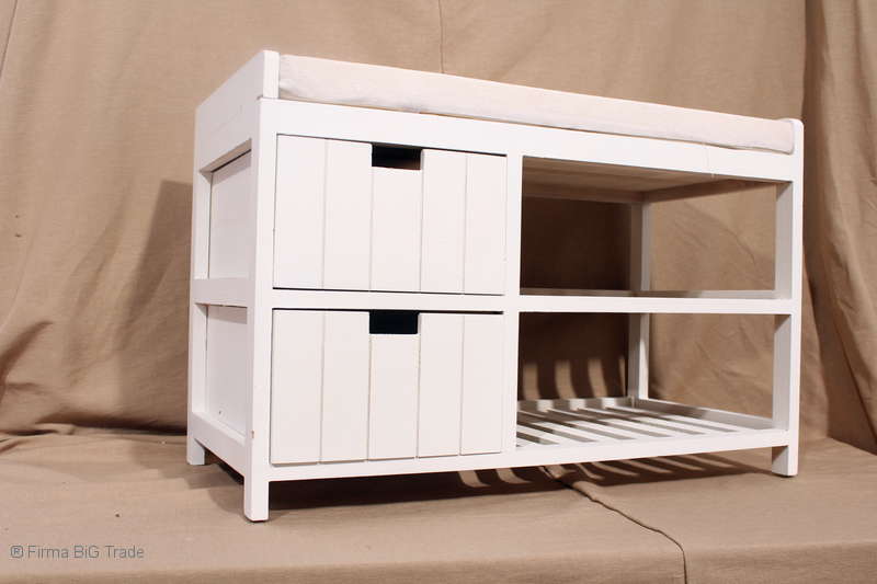 Shabby Chic! Schöne Flurbank Schuhregal Schuhbank 2 Schubladen 2 Ablagen Sitzpolster Weiß 1