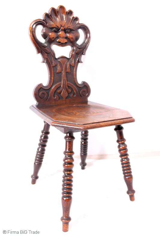 MUSEAL! Antiker Gründerzeit Bauernstuhl Holzstuhl Brettstuhl Küchenstuhl Schnitzereien / Nr. 24