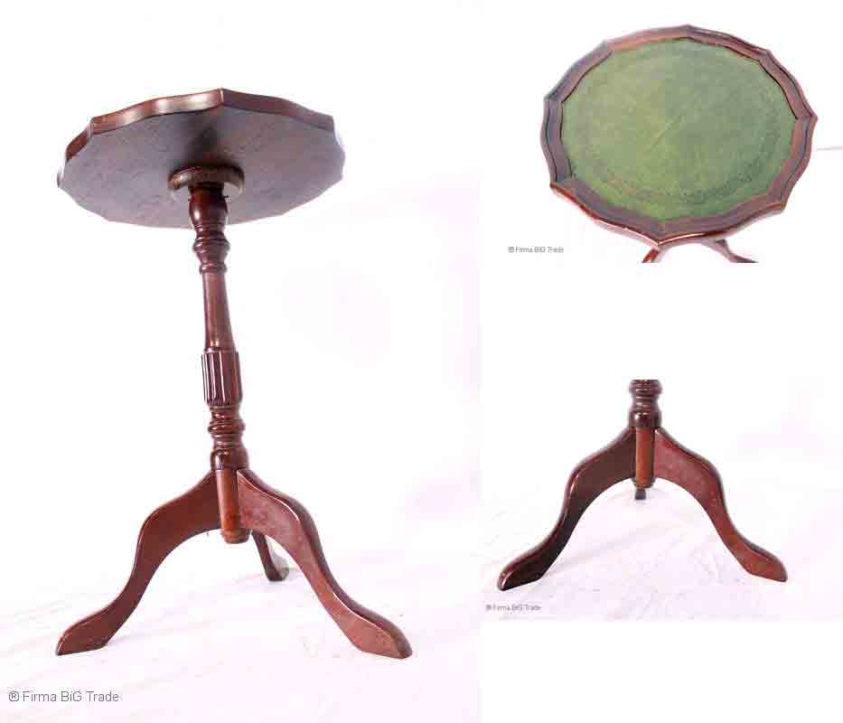 Eleganter runder Tisch engl. Stil Beistelltisch Blumentisch Blumensäule Lederablage Flurtisch