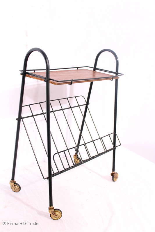 Klutiger 60er Zeitungsständer Medienregal Beistelltisch Zeitungstisch Metall Schrägablage Rollen