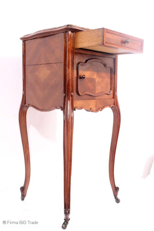 Formschöner antiker Art Déco Nachttisch Flurtisch Nachtschrank Telefonschrank Marmorplatte N127