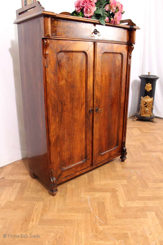 Zauberhaftes antikes Louise Philippe Vertiko Wohnzimmerschrank Kranz Verzierungen Einlageböden Schublade