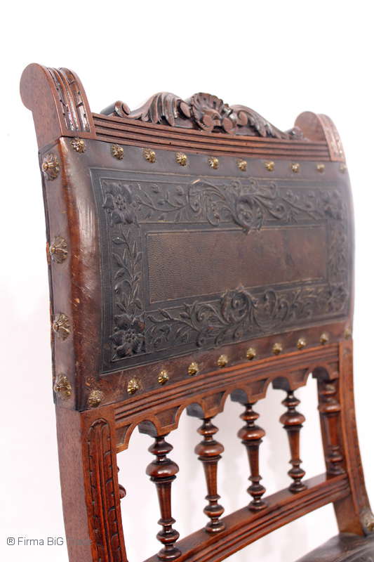 Zauberhafter antiker Gründerzeit Stuhl Lederstuhl Lederprägungen Henry II Holzstuhl / 3 vorhanden / Eiche