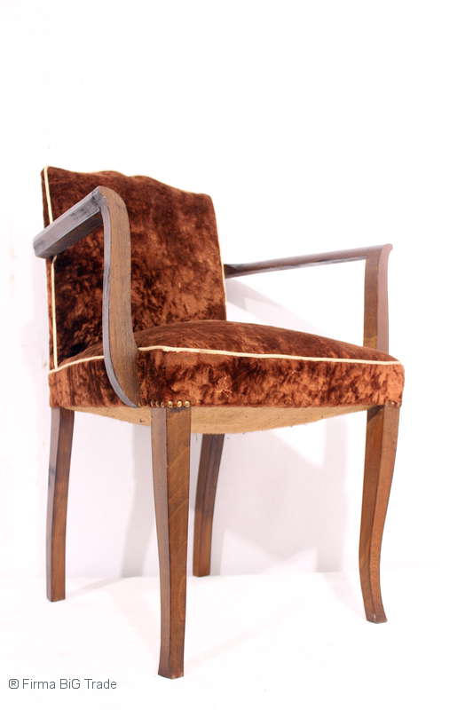 SELTEN! Antiker Art Deco Armlehnenstuhl Schreibtischstuhl Holzstuhl Samtbezug 1