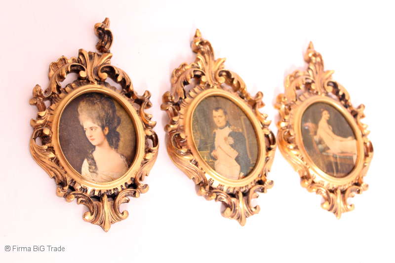 3 Wunderschöne Bilder Napoleon Josephine Verzierungen Barock Stil Rahmen Gold Patina