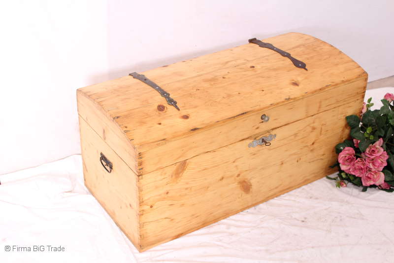 Wunderschöne antike Gründerzeit Weichholz Runddeckeltruhe Truhe Eisenbeschläge Massiv