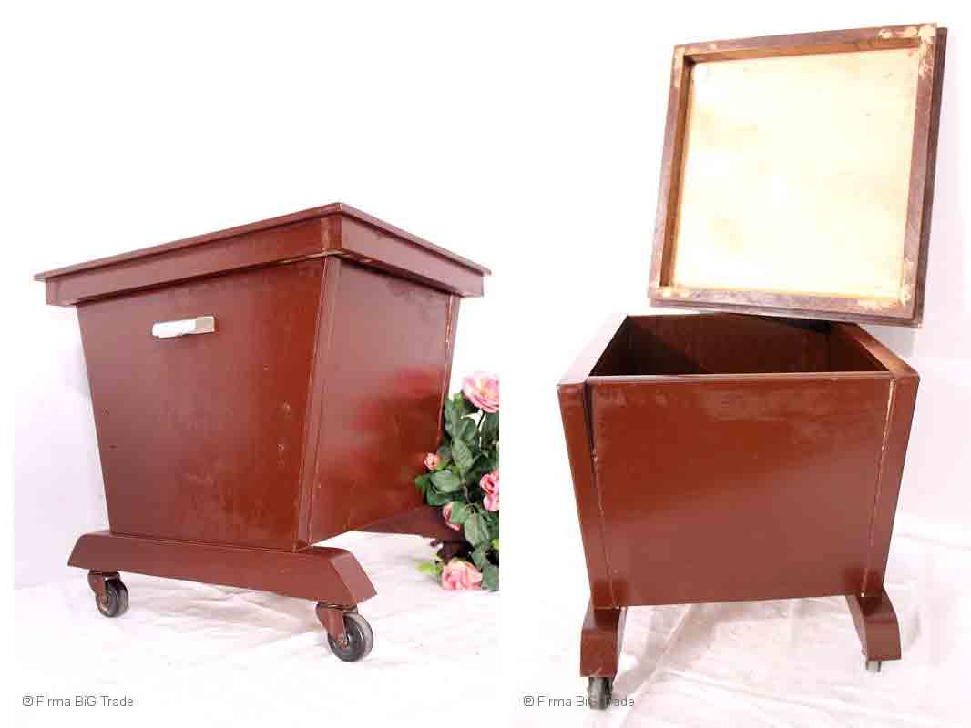 Ausgefallener Tisch-Truhe m. Rollen / Beistelltisch / Couchtisch / Flachdeckeltruhe Griffe Formschön