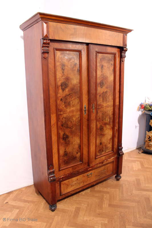 Wunderschöner antiker Gründerzeit Schrank Kleiderschrank Flügeltüren Wurzelholz verziert