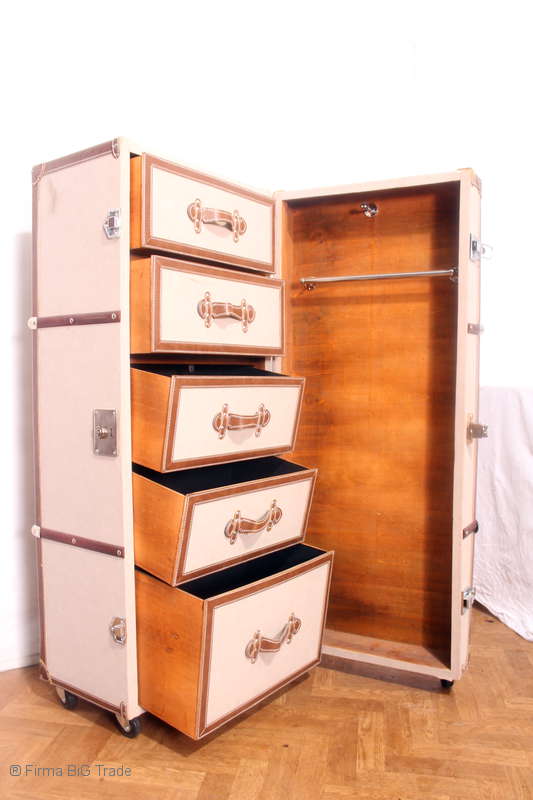 Großer Schrankkoffer Kommode Container Überseekoffer Kleiderstange 5 Schubladen Rollen Nr. 1