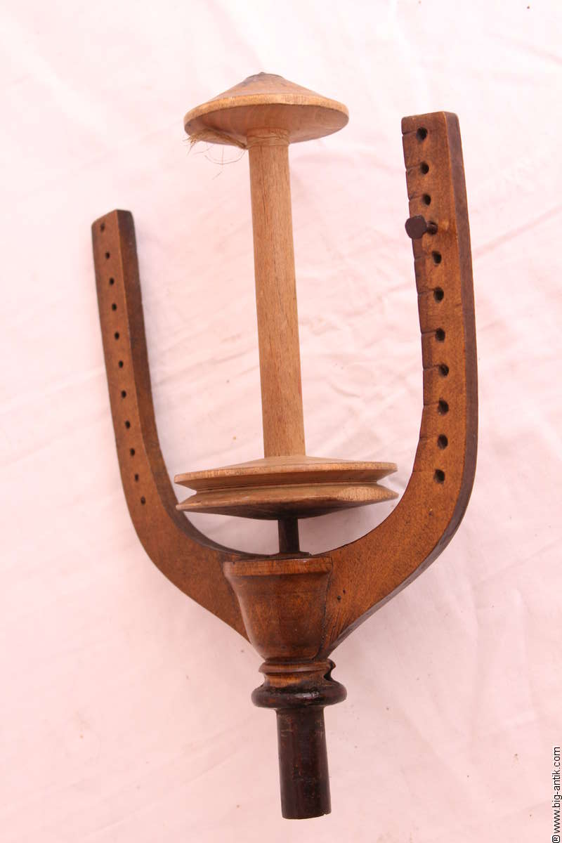 Antike Spule für Spinnrad / Spindel / Spinnflügel / Flügel mit Spule und Wirtel / Spinnradzubehör