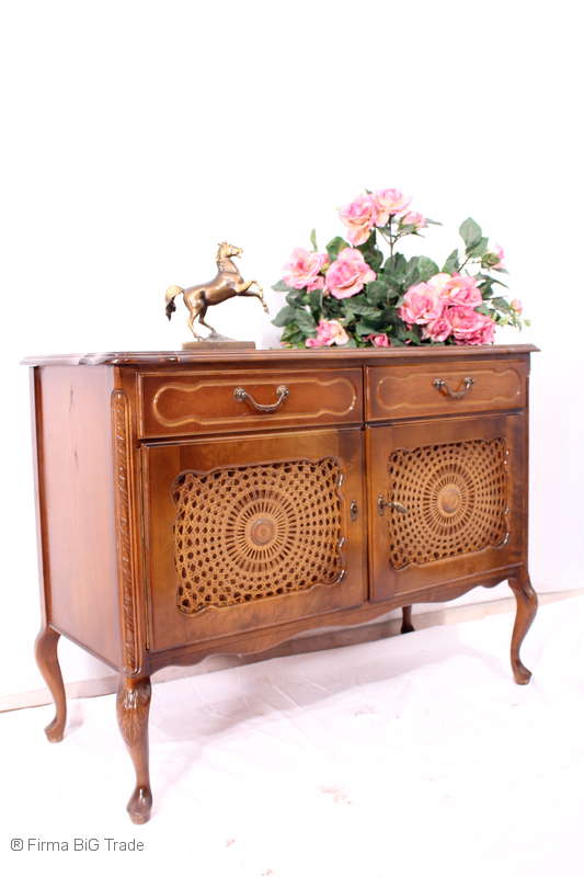 Elegante Chippendale Kommode Beistellschrank Sonnengeflecht Flügeltüren 2 Schubladen