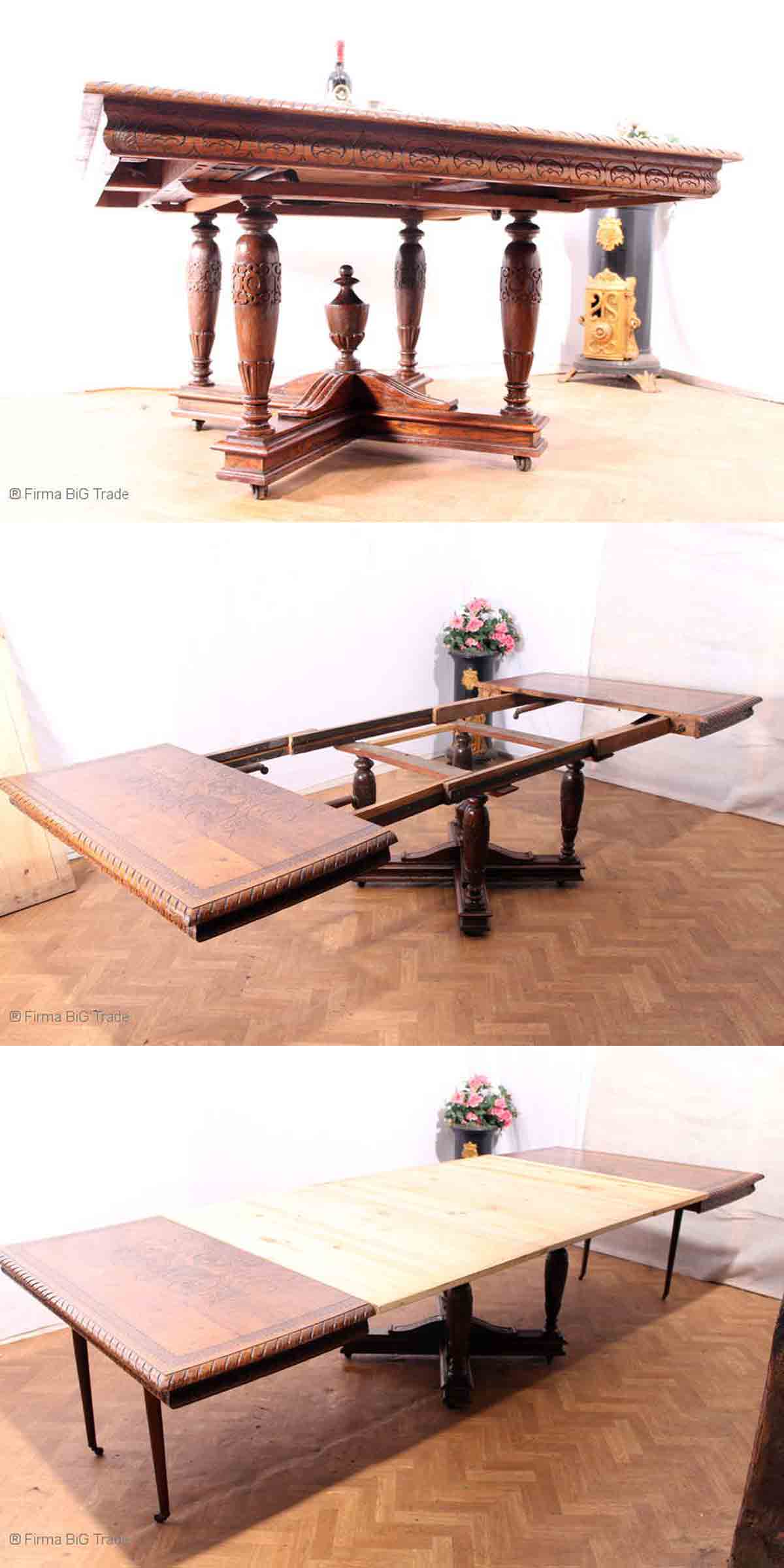 Prächtiger Antiker Gründerzeit Kulissentisch Tafeltisch Rittertisch 3 Erweiterungsplatten