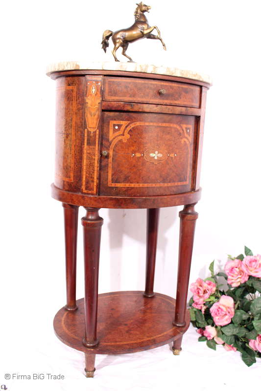 Ovaler antiker Empire Nachttisch Flurtisch Marmor Intarsien Beistellschrank Telefontisch / N168