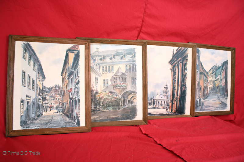 4 Schöne Aquarelle Druck / von Fritz Ludwig Schmidt / Saarlandmuseum in Saarbrücken / Holzrahmen 2507